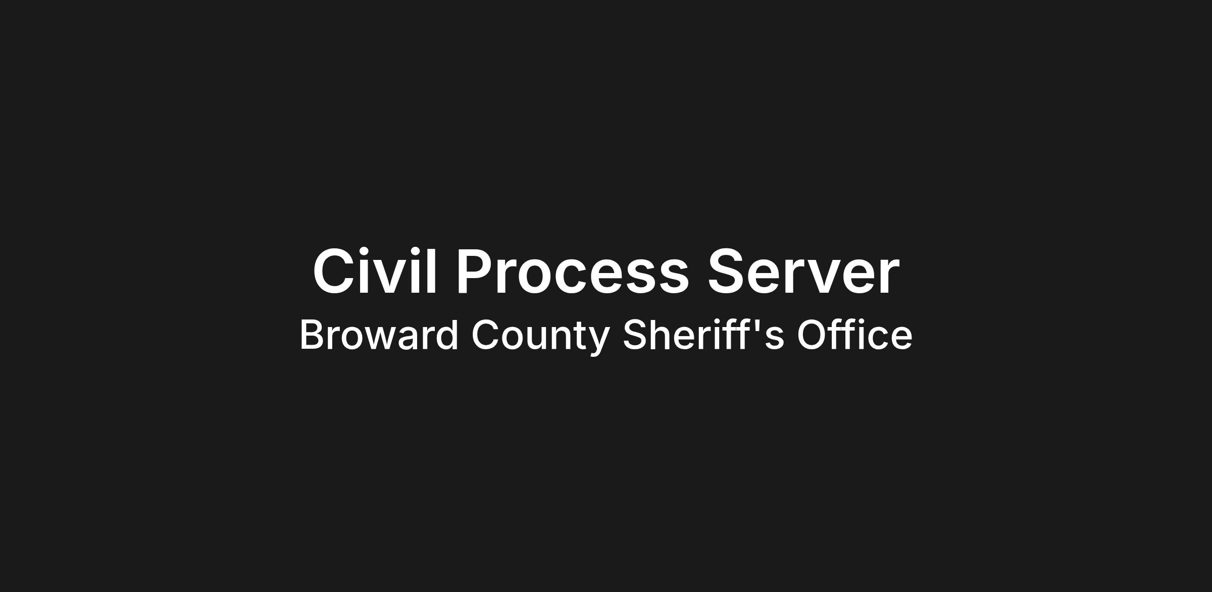 Under direction, the purpose of the position is to serve legal documents pursuant to statutory guidelines within the Civil Division of the Broward Sheriff's Office. Employees in this classification perform routine field work as prescribed in Chapter 48 of the Florida State Statutes. Position is responsible for the delivery, recording and distribution of legal documents including, but not necessarily limited to, non-enforceable writs, subpoenas, and criminal summons. Performs related work as directed.